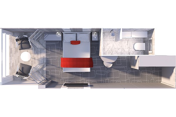 - Interactive flat-screen television system to view and select shore excursions, order room service, and watch movies*