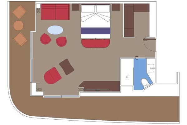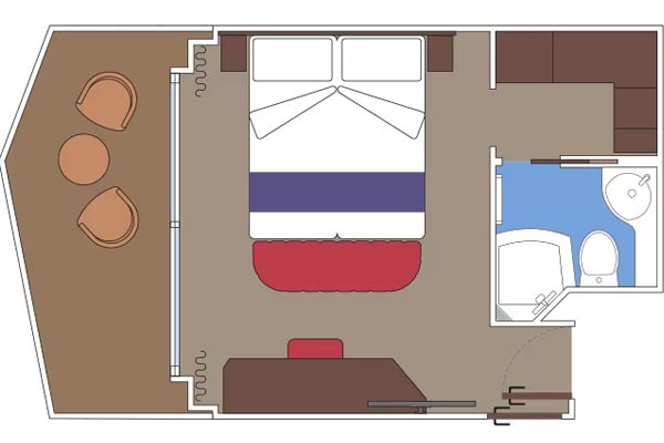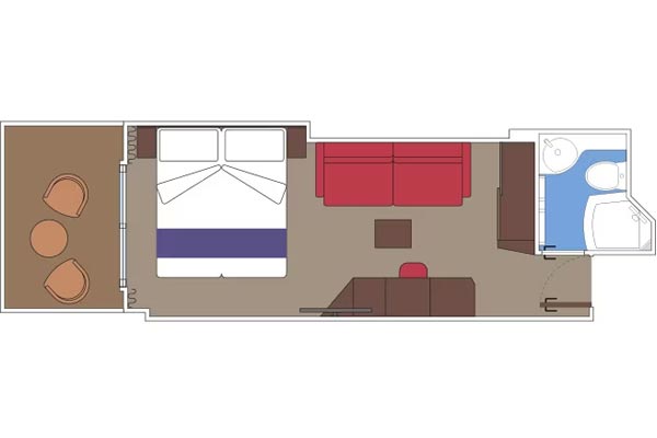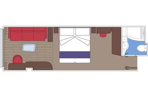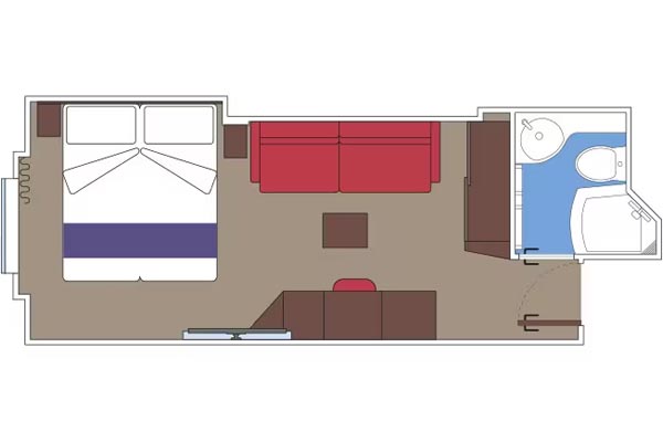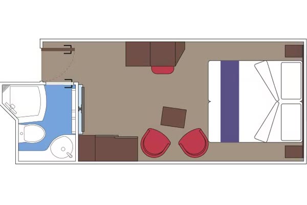 שטח כ. 39מ"ר - חדר רחצה עם מקלחת ומייבש שיער - ארון בגדים - מיטה זוגית נוחה הניתנת להמרה בשתי מיטות יחיד (על פי בקשה) - טלוויזיה אינטראקטיבית, חיבור לאינטרנט אלחוטי (בתשלום), טלפון וכספת - מיני בר ומיזוג אוויר בחלק מהחדרים יש חלון הזזה פנורמי ההופך למעקה זכוכית כשהוא פתוח .התמונה להמחשה בלבד; הגודל, הפריסה והריהוט עשויים להשתנות (בתוך אותה קטגוריית חדר נוסעים).
